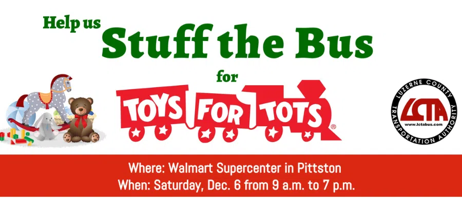 Join us and LCTA as we “Stuff the Bus” with new, unwrapped toys, books, and games for the Marine Corps Toys for Tots Foundation. Cash donations will also be accepted.