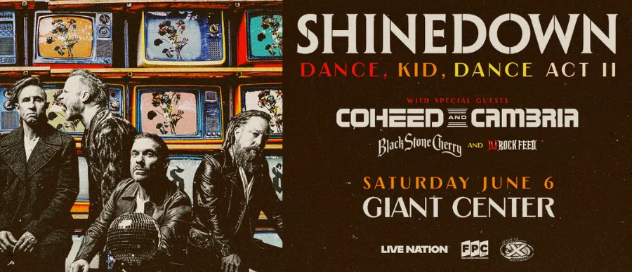 Shinedown “Dance, Kid, Dance Act II” with special guests Coheed and Cambria, BlackStoneCherry and DJ Rock Feed are heading to GIANT Center on June 6thand we want to send you to the show!